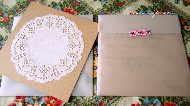 Easy DIY - The cards were really easy to make. I cut the brown paper into 14 cm squares, stuck the paper doily onto the card and it's done! And it looks pretty 'cause of the paper doily pattern.